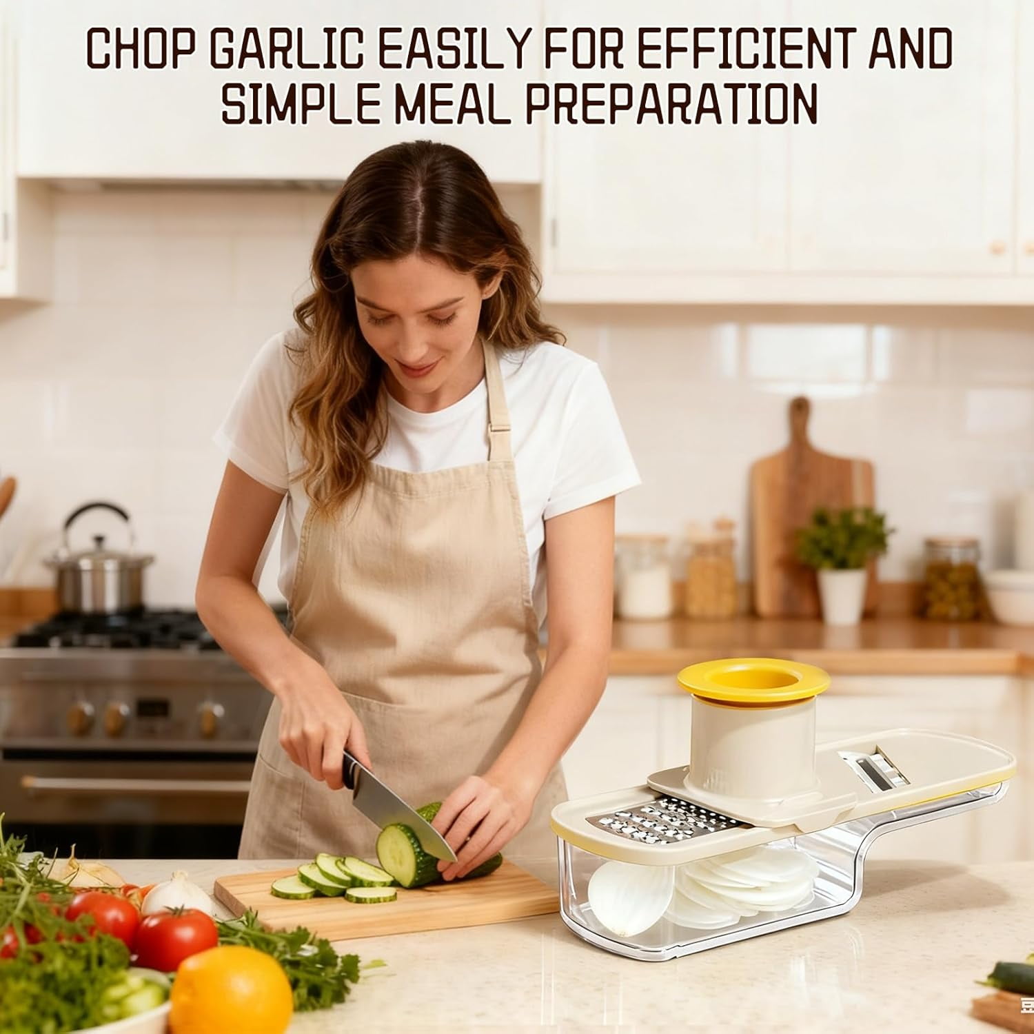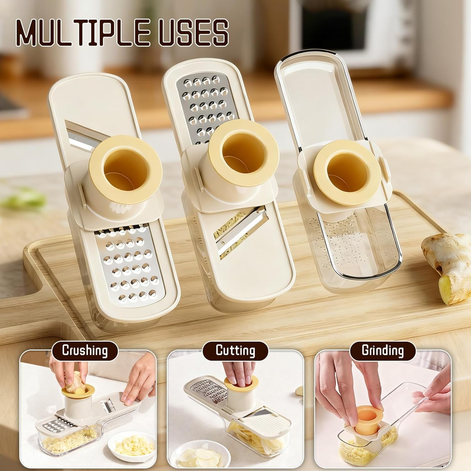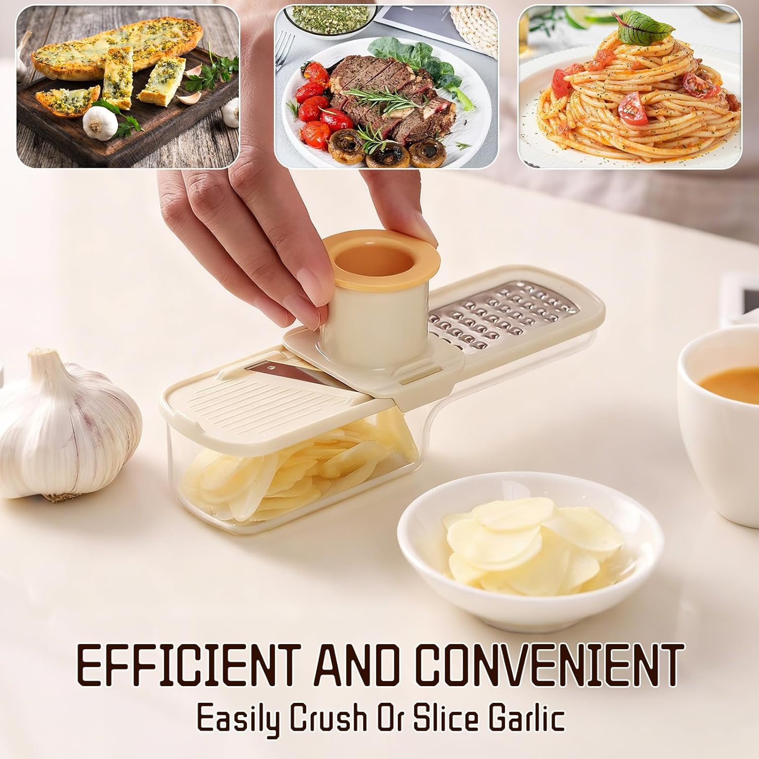2026 New Garlic Slicer Super Thin, Mini Multi-Functional Mandoline Slicer and Veggie Ginger Grinder with Container for Camping and Home Chef Use