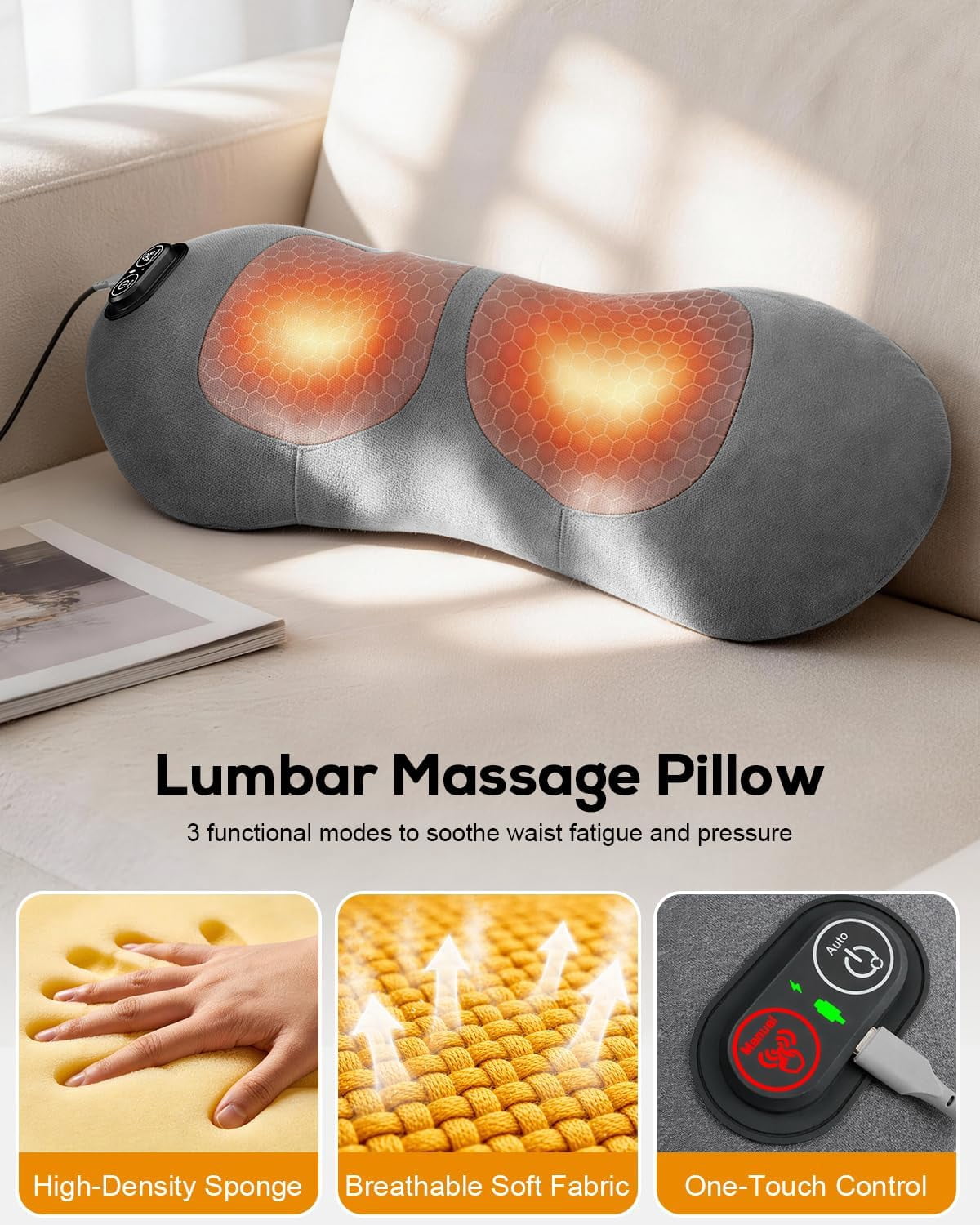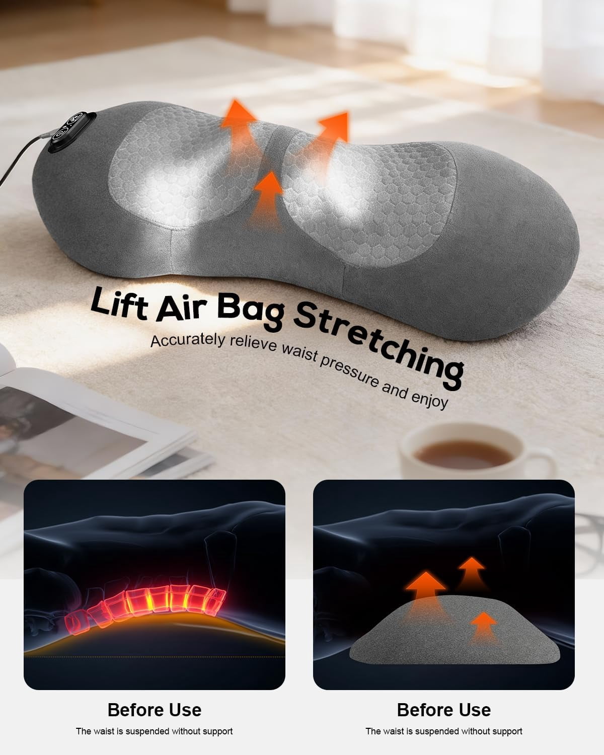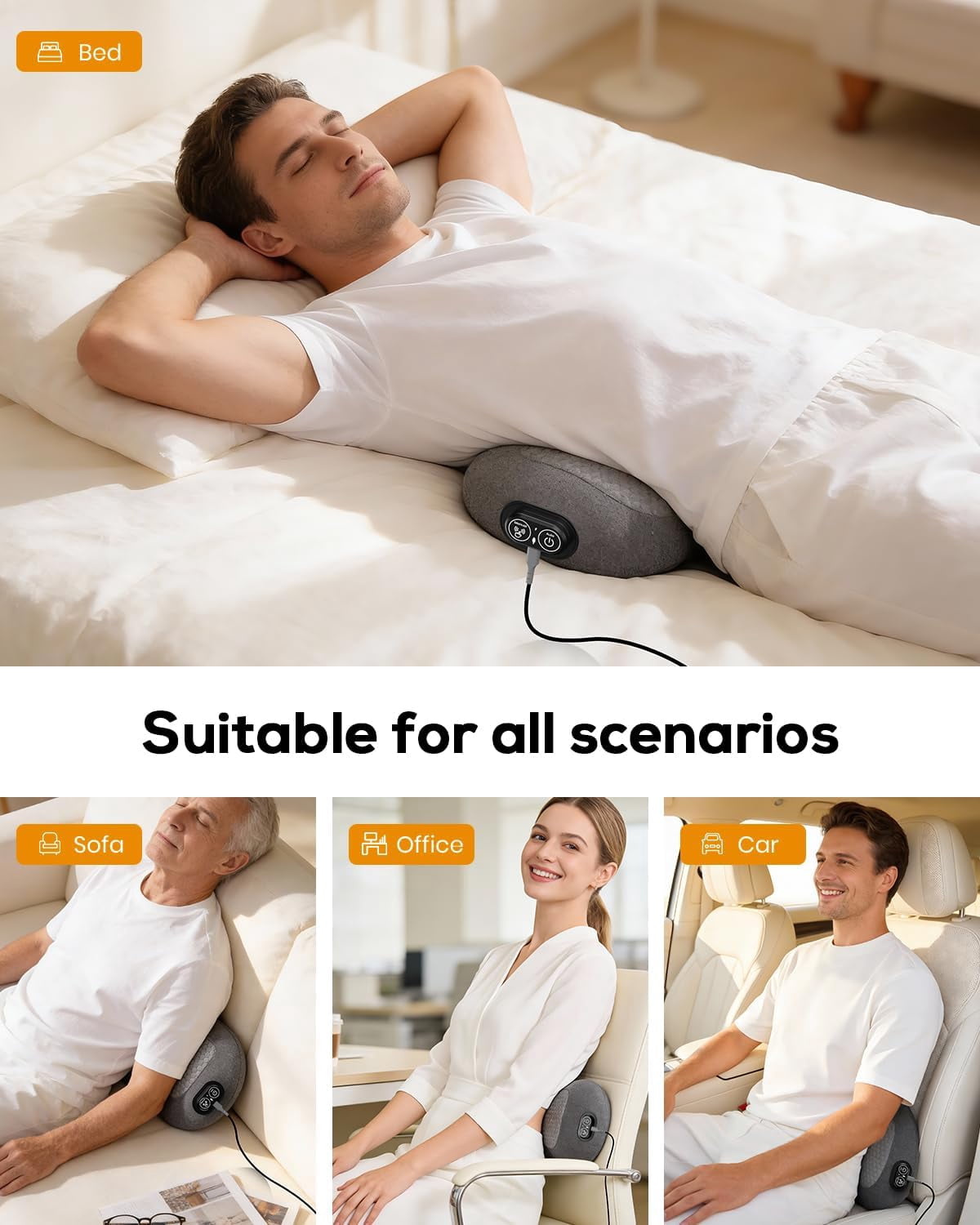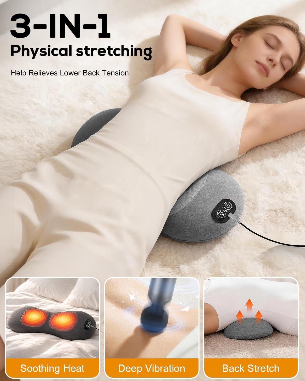 3 in 1 Back Massager with Heat, Vibration & Stretch, USB Rechargeable Height Adjustable Lumbar Support for Deep Tissue Pain Relief in Bed, Sofa, Car and Office Use