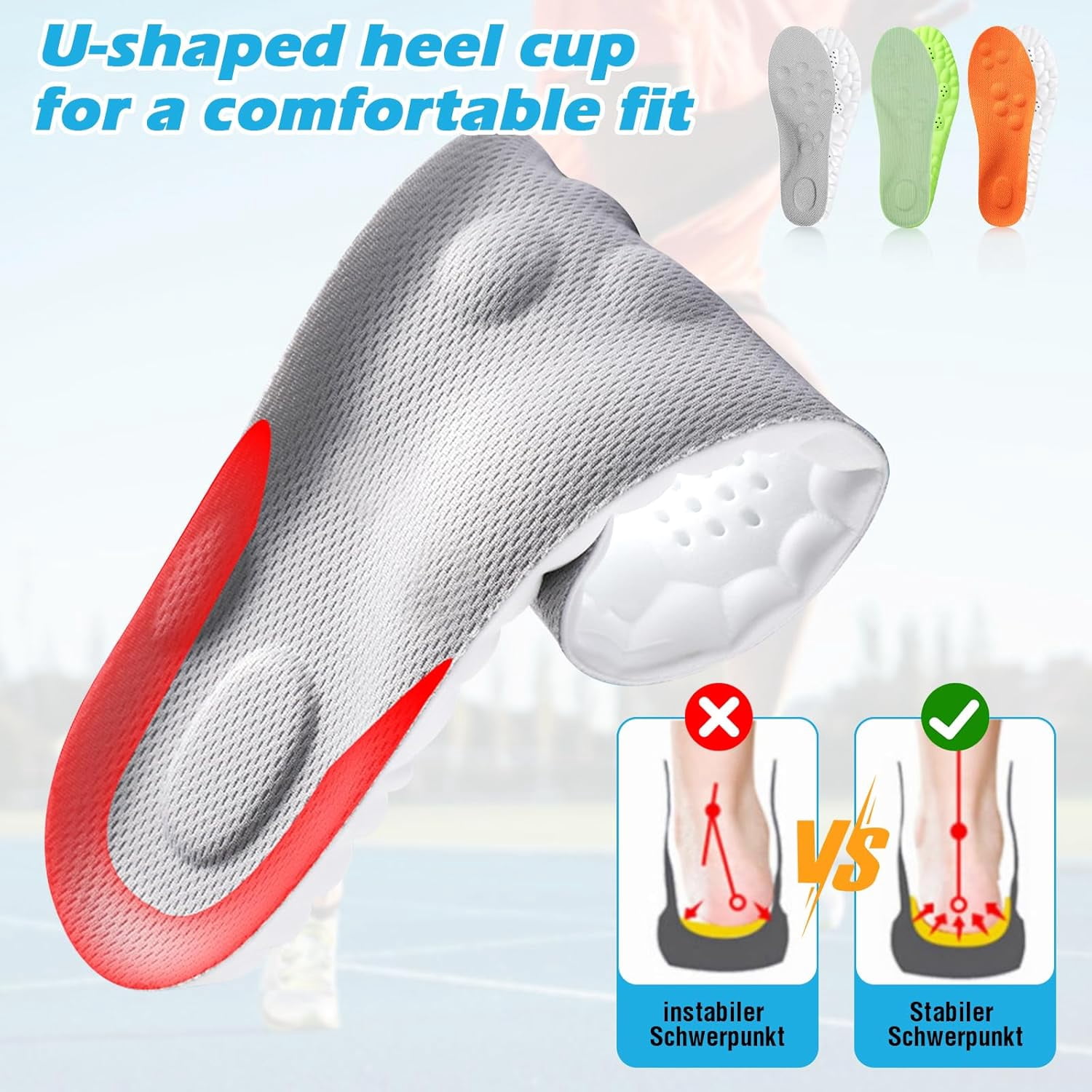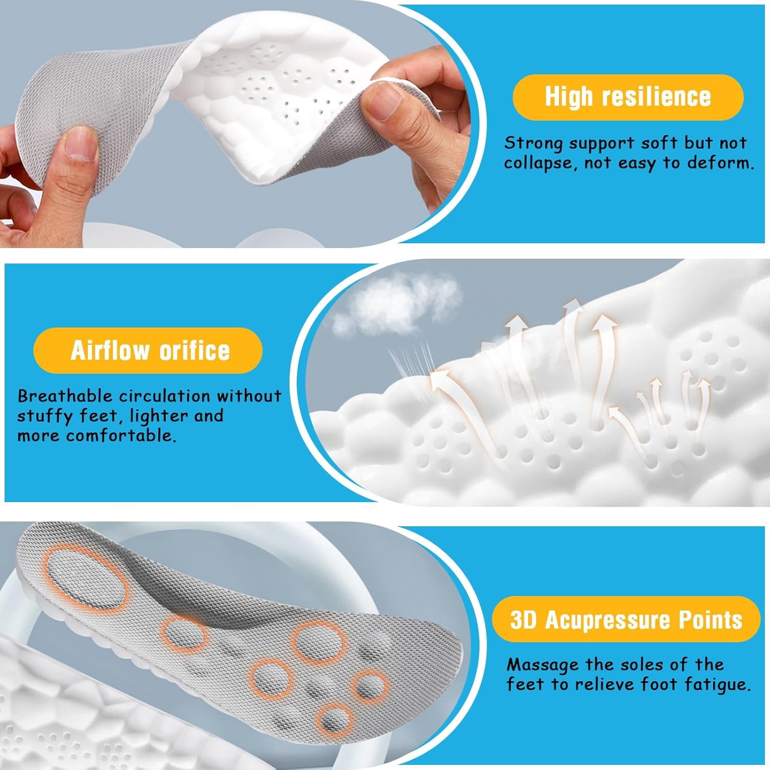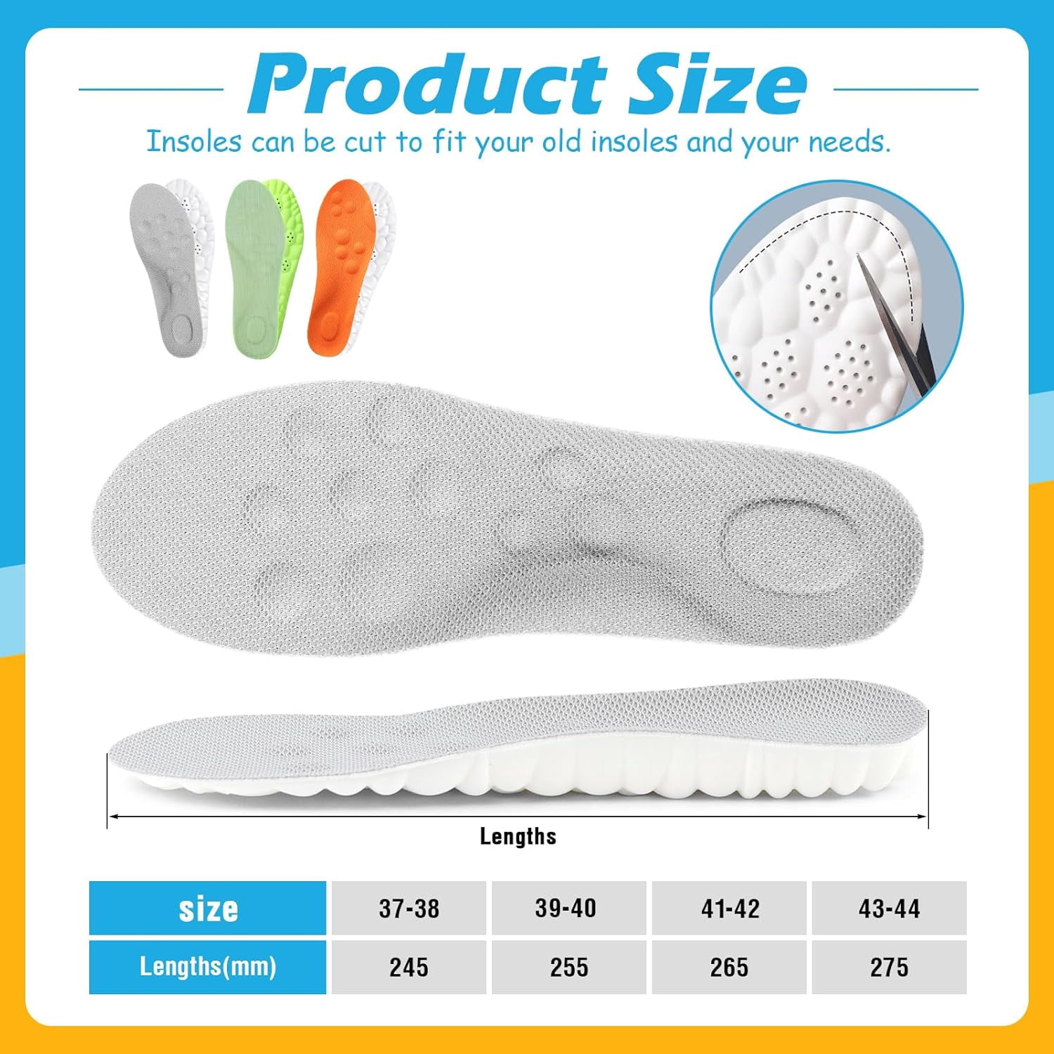 3PCS Insoles for Men Women, Breathable Massage Inserts with 4D Cloud Technology, Memory Foam Cushion & Arch Support, Trim to Fit All Shoes