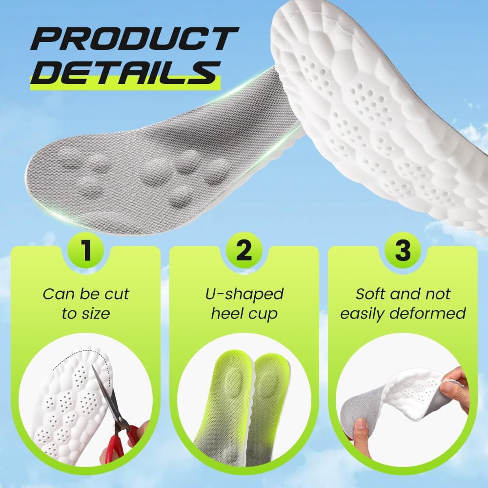 4D Cloud Technology Insole for Men Women, 2026 New Memory Foam Cloud Insoles with Arch Support & Shock Absorption, Trim to Fit All Shoe Types