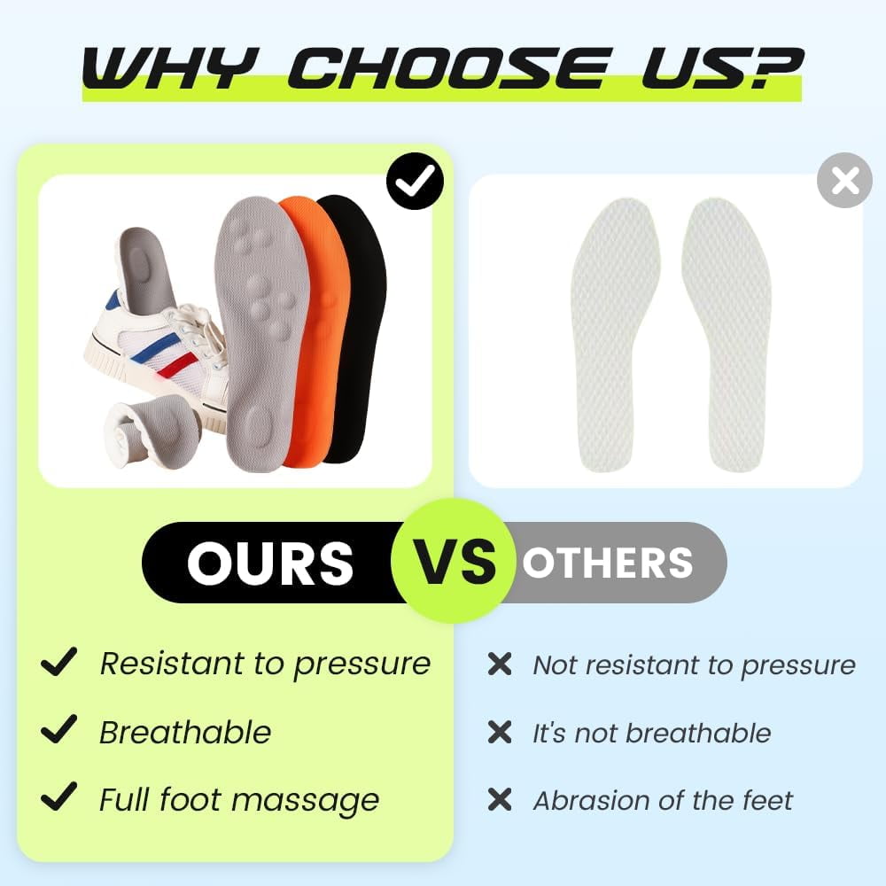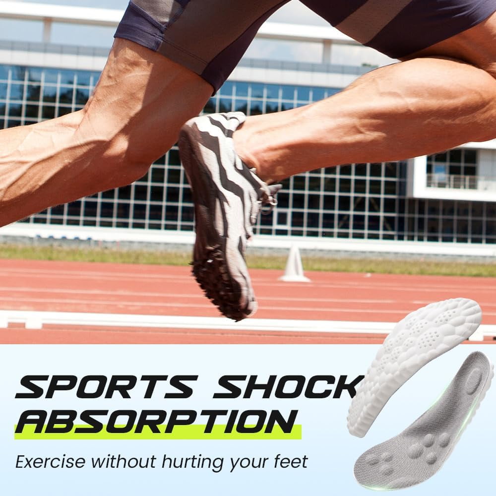 【Cloud-Like All-Day Comfort】Highly adaptive memory foam dynamically contours to your feet, absorbing shock and tension so you can stand or walk longer without fatigue. 【Enhanced Stability & Alignment】Deep U-shaped heel cup and advanced shock absorption promote proper alignment, correct gait, and prevent wobbling for steady, confident strides. 【Breathable & Odor-Fighting】Honeycomb design maximizes airflow while quick-drying fabric wicks away moisture to keep feet cool, dry, and fresh all day. 【Custom Trim-to-Fit】Easily trim these unisex insoles to achieve a perfect fit for any shoe—sneakers, boots, dress shoes, or work footwear—in minutes. 【All-Day Relief for Active Lifestyles】Ideal for those on their feet all day, office workers, athletes, and seniors. Delivers universal comfort and support for every step.