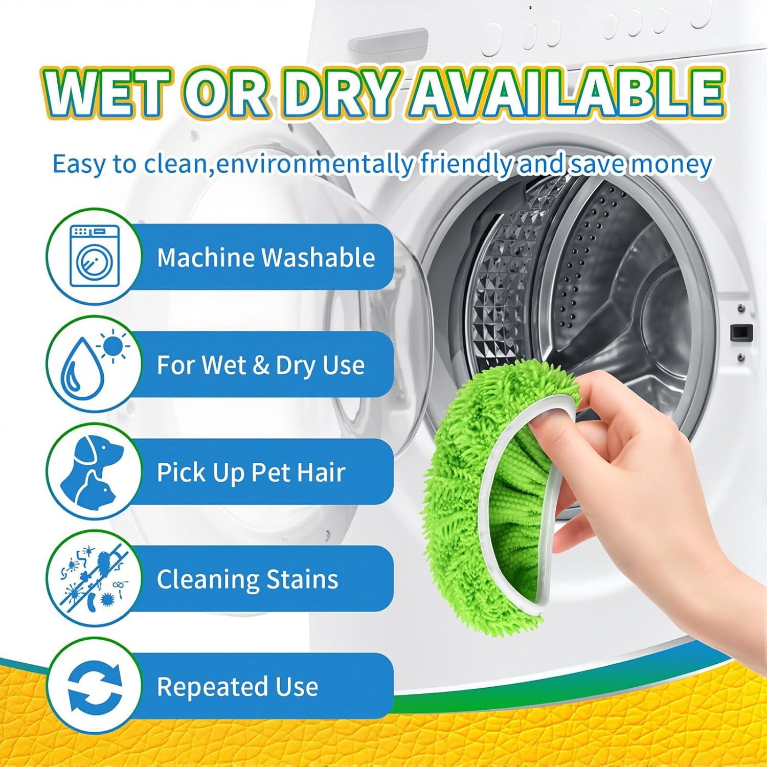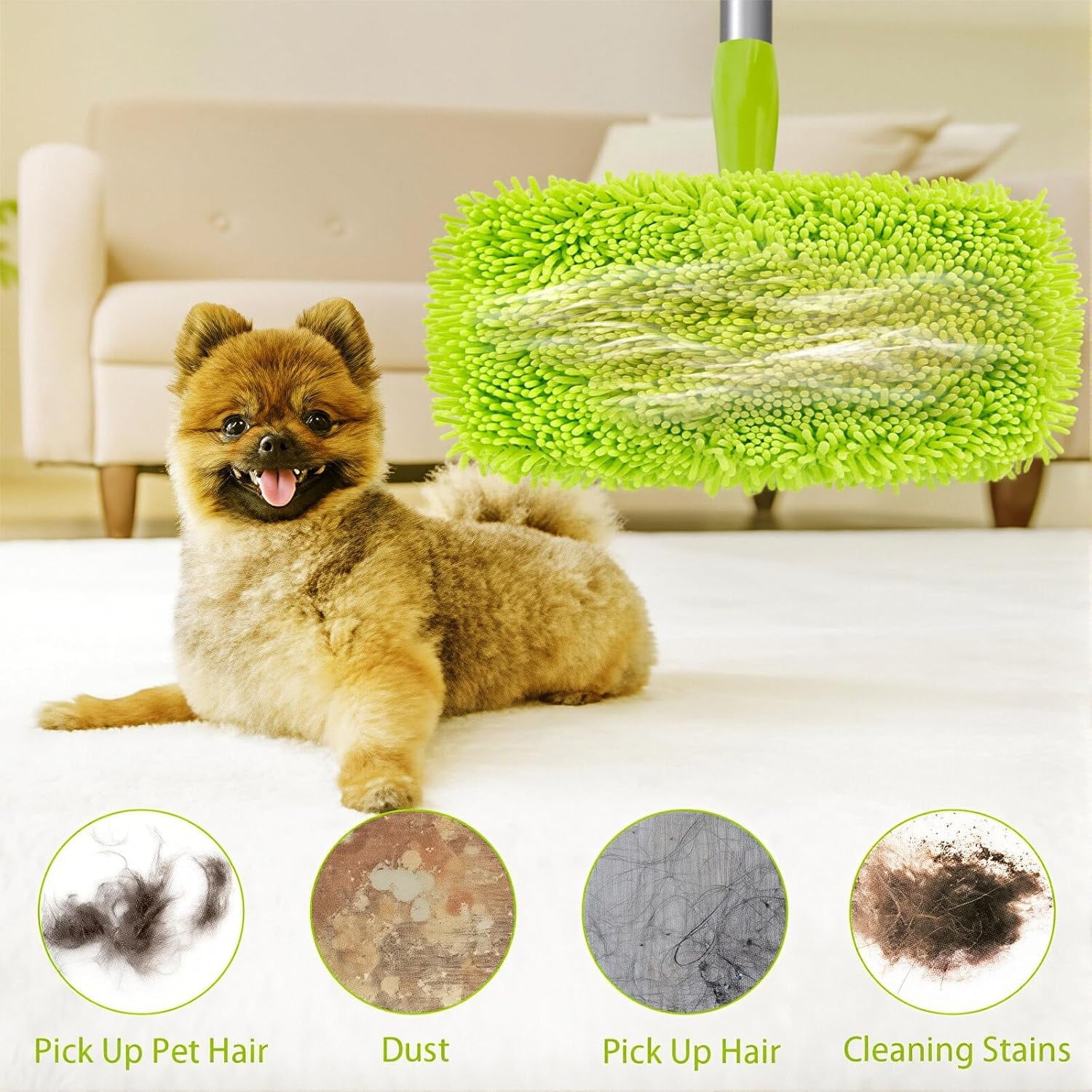 【6-Pack Reusable Value】Get six washable, reusable mop pads in one pack. A cost‑effective, eco‑friendly alternative to disposable refills for your regular cleaning routine. 【Machine Washable & Long‑Lasting】Toss them in the included laundry bag and machine wash to refresh between uses. Maintains like‑new cleaning performance wash after wash. 【Super Absorbent & Streak‑Free】Made of high‑density chenille microfiber that soaks up spills and locks in dust for a thorough, residue‑free clean on any floor. 【Safe on All Floor Types】Gentle yet effective on vinyl, tile, hardwood, laminate, and marble. A versatile cleaning solution for every room in your home. 【Grabs Pet Hair & Dust】Textured surface easily picks up pet hair, dust, and debris—making floor care in pet‑friendly homes simpler and more efficient.