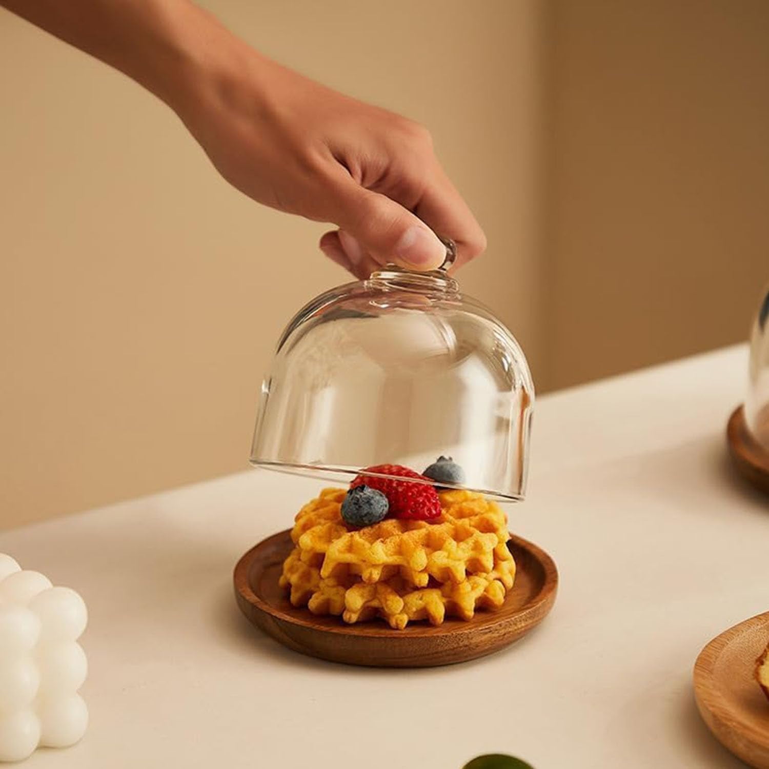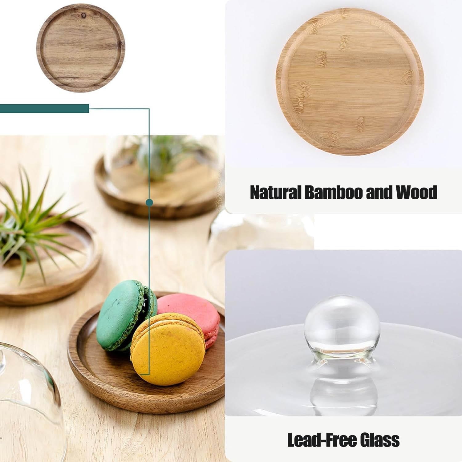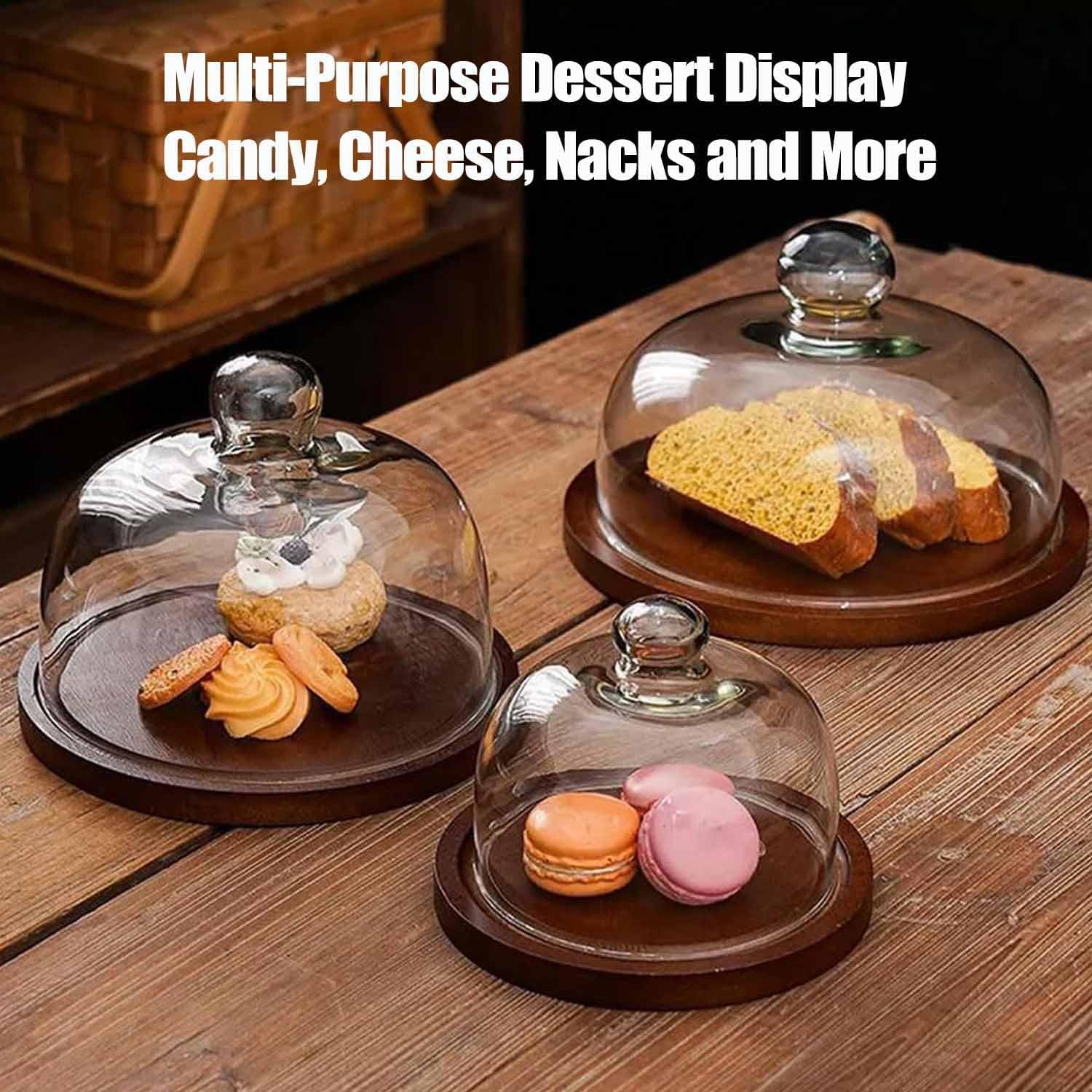 Cake Stand with Glass Lid, Charcuterie Display with Clear Dome Lid and Wooden Base, Mini Dessert Display Stand for Cheese, Appetizers, Cakes, Holiday and Party Tables.