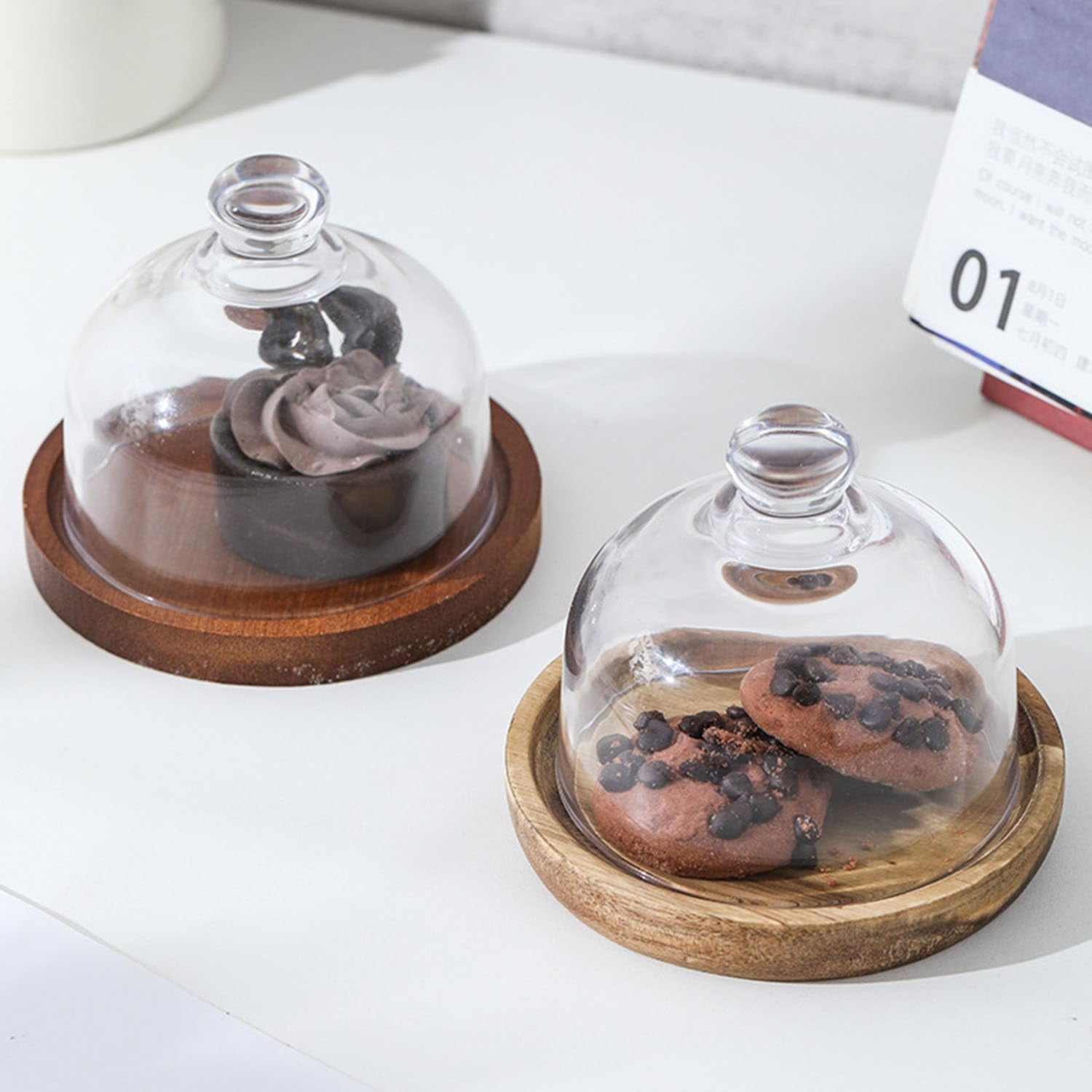 【Holiday Snow Globe Display Dome】This elegant glass dome on a wooden base acts as a mini cake stand or “food crystal ball,” adding a festive touch to weddings, parties, and special occasions. 【Dustproof & Keeps Food Fresh】The sealed glass cover locks in freshness and shields displayed treats like cheese and desserts from dust, keeping them perfect throughout your gathering. 【Elegant Wooden Base Design】Features a finely textured wooden tray paired with a glossy glass dome for a sophisticated look. Elevates cakes, cocktails, and charcuterie boards stylishly. 【Easy to Clean & Reusable】Convenient top handle allows easy lifting. The removable glass lid and shallow wooden tray make cleaning quick and simple after use. 【Versatile for Any Setting】Perfect for holiday desserts, wedding buffets, or daily afternoon tea. Adds an elegant, atmospheric touch to any table setting or display.