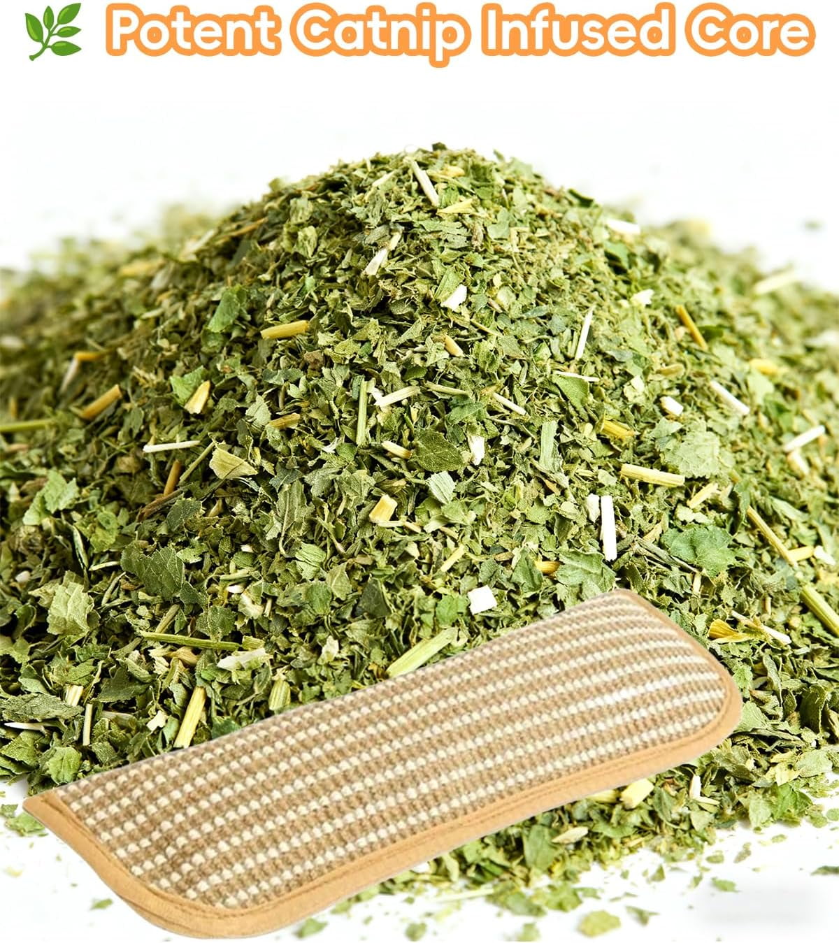 【100% Organic Catnip Attraction】Infused with potent, organic catnip that releases a lasting aroma to awaken your cat’s natural hunting instincts. Effectively relieves boredom and reduces stress through engaging sensory play. 【Durable Sisal & Soft Plush Dual Texture】Combines a natural, moderately rough sisal exterior with soft, tough plush. The sisal helps clean teeth and satisfies scratching urges, while the plush ensures comfortable cuddling and biting. 【Promotes Active Full-Body Exercise】Specially shaped for intense play, encouraging kicking, wrestling, and rolling. Helps cats exercise muscle strength, agility, and physical coordination during energetic daily sessions. 【Cat-Friendly Ergonomic Design】Features an innovative structure that reduces neck strain during play. The balanced fabric texture is gum-safe and helps relieve teething discomfort in kittens while exercising jaw strength. 【Reinforced High-Quality Construction】Made with premium sisal fibers and bite-resistant fabric using reinforcement technology. Built to withstand even the most aggressive chewers, ensuring long-lasting durability without frequent replacements.