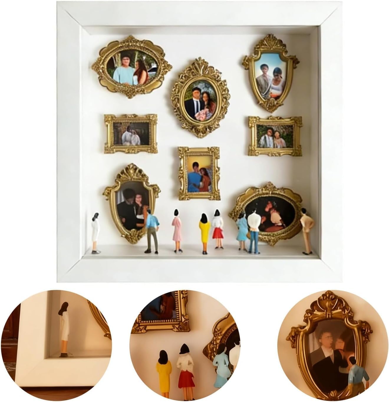 【Your Personal Memory Museum】Design a unique shadow box celebrating life’s special moments—from family memories to travel adventures. A heartfelt canvas for personal expression and storytelling. 【Elegant Miniature Details】Adorned with delicate gold frames and finely crafted miniatures, each element adds a touch of timeless elegance, making your memories shine with refined style. 【A Therapeutic Creative Journey】More than a craft—this immersive DIY experience inspires reflection and calm. Mold, frame, and arrange scenes that tell your story, turning creativity into a mindful retreat. 【A Gift That Tells a Story】Perfect for anniversaries, weddings, or birthdays. This isn’t just a gift—it’s an invitation to create, cherish, and preserve moments with deep, personal meaning. 【Simple & Enjoyable to Assemble】Designed for ease with no special tools needed. An intuitive, low-fuss process lets anyone dive into creativity and bring their vision to life effortlessly.