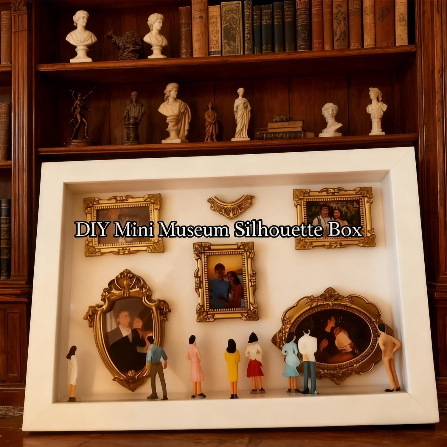 DIY Mini Museum Silhouette Box, 9.8” Custom Shadow Box Frame Kit with Miniature Figurines, Personalized Photo Display Memory Decor for Valentine’s Day & Anniversaries