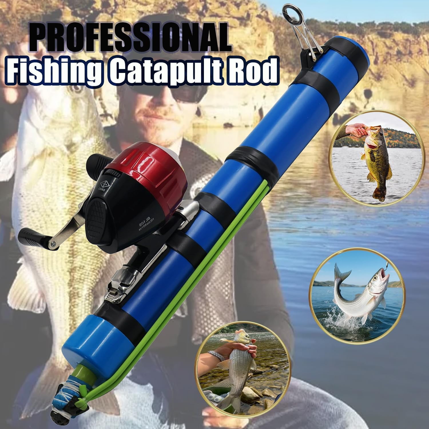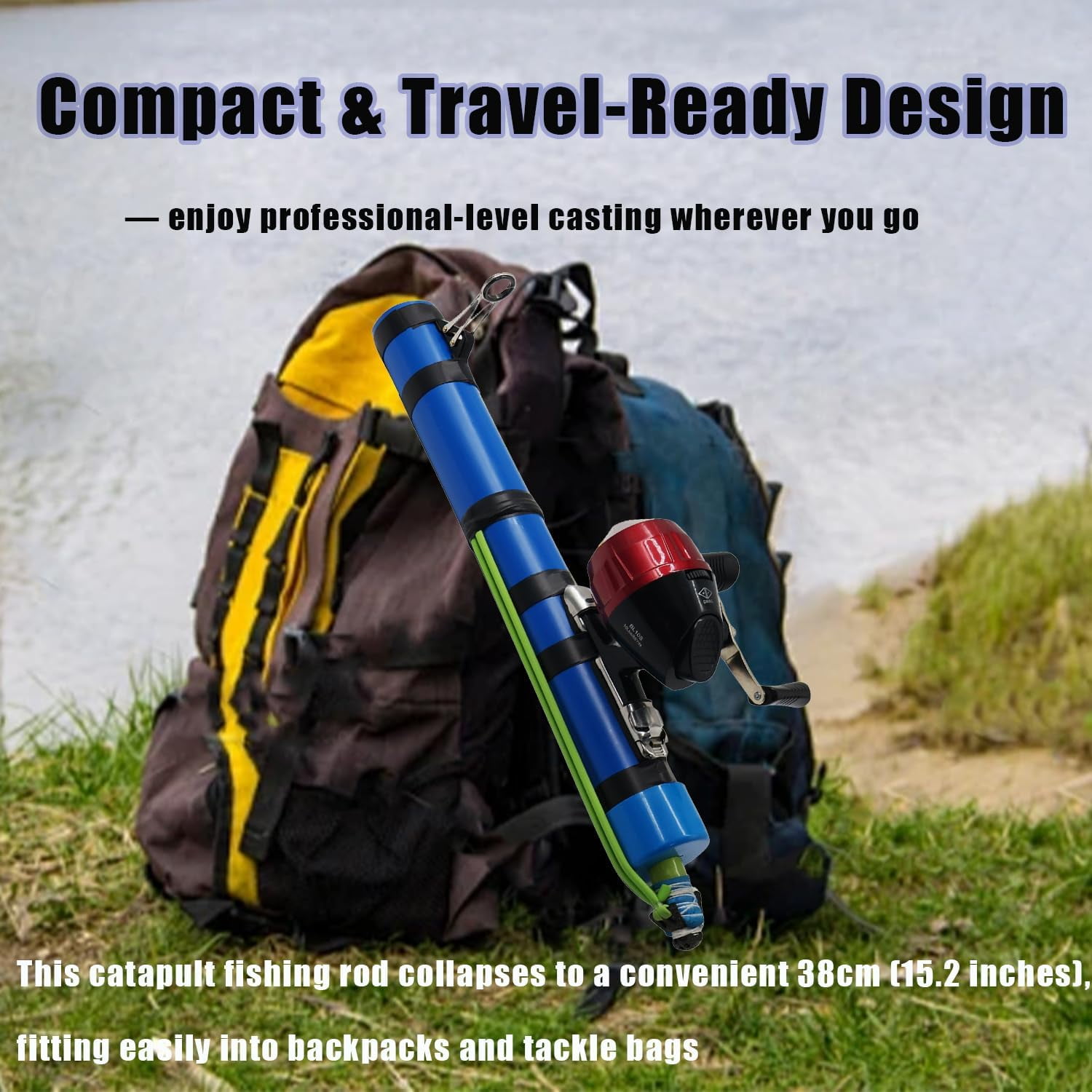 Fishing Catapult Rod, 15In Professional Sling Shot Fishing Reel Pole, Saltwater and Freshwater Great Gear for Traveling Anglers