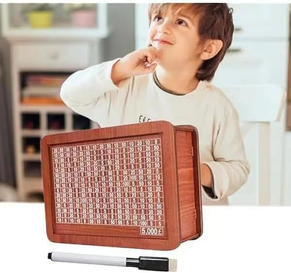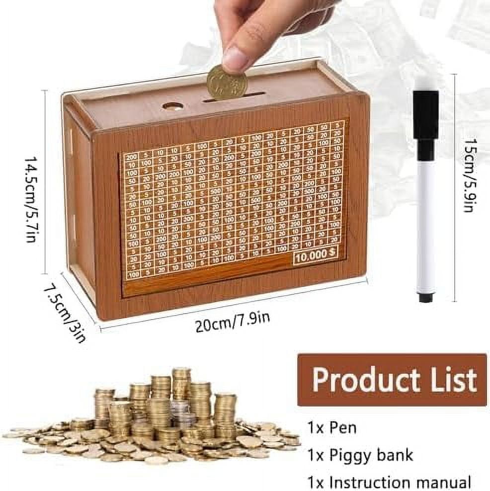 Moneybox Wooden with Money Target and Numbers, 6.7” * 5.1” Portable Countdown Money Saving Box & Piggy Bank Gift for Adults, Teenagers