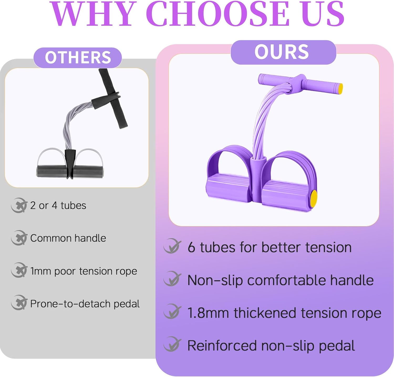 Multifunction Pedal Resistance Band with Handles, 6 Tubes Upgrade AB Training Auxiliary Workout Equipment with 200% Stretch for Full Body Workouts