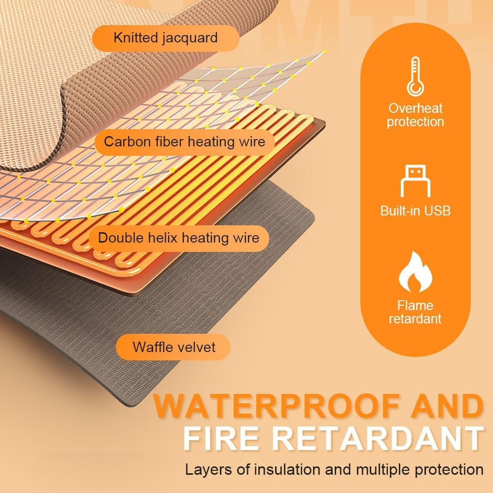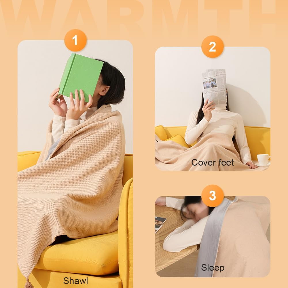 【3 Adjustable Temperature Levels】Choose from three precise heat settings (35°C / 45°C / 55°C) for customized warmth. Perfect for gentle relaxation or instant winter comfort. 【Fast USB Heating & Safe Low-Voltage Design】Powered by any USB port or power bank for quick, even warmth. Safe, low-voltage operation prevents overheating indoors or on the go. 【Breathable & Stylish Knitted Fabric】Made from high-density cotton-blend jacquard knit for soft, skin-friendly comfort. Delicate stitching ensures cozy warmth with a modern look. 【Versatile Wearable as Shawl or Lap Blanket】Use as a shawl, lap blanket, or throw to warm your neck, shoulders, and back. Ideal for sofa lounging, office work, or outdoor outings. 【Machine Washable & Portable Foldable Design】Heating element is waterproof and machine washable. Lightweight and foldable—packs easily for travel, camping, or daily commutes.