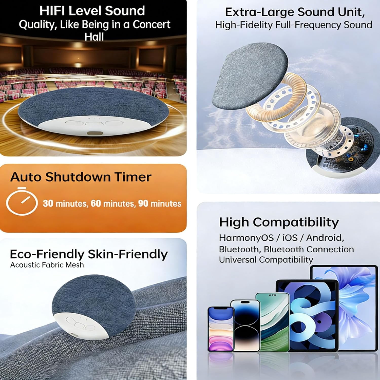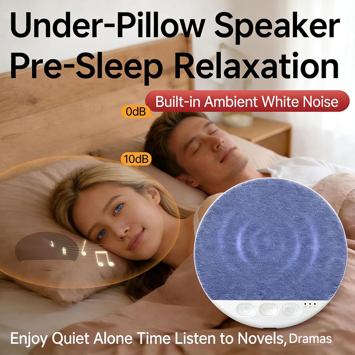 Ultra-Quiet Sleep Pillow Speaker, Bluetooth 5.4 White Noise Machine, Bone Conduction, 10Hrs Play & Auto-Off Timer, for Side Sleepers, Adults & Couples
